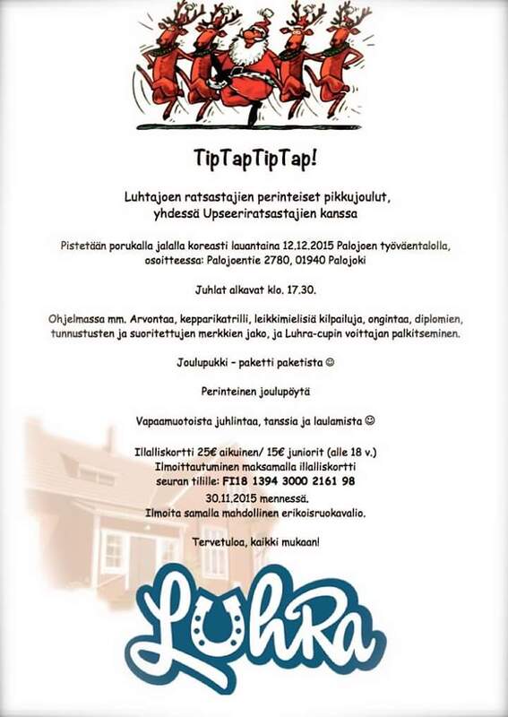 Tervetuloa LuhRan ja UpsR yhteisiin pikkujouluihin, ilmoittautumiset oheisen kutsun mukaan marraskuun loppuun mennessä ! Liitteet